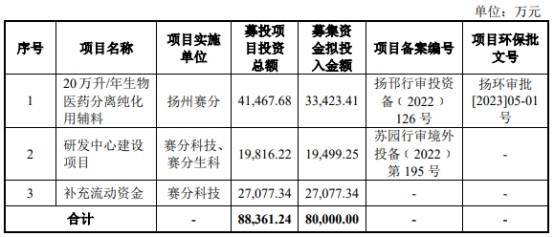 赛分科技拟在科创板募资80,000.00万元,用于20万升/年生物医药分离纯化用辅料、研发中心建设项目、补充流动资金。