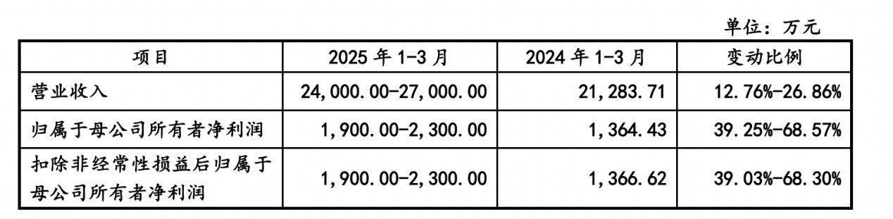 众捷汽车预计2025年1-3月实现营业收入2.4亿元至2.7亿元,同比变动幅度为12.76%至26.86%;预计归属于母公司所有者净利润为1900万元至2300万元,同比变动幅度为39.25%至68.57%;预计扣除非经常性损益后归属于母公司所有者净利润为1900万元至2300万元,同比变动幅度为39.03%至68.30%。