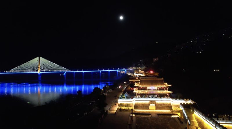 在长江大桥、三国印巷等地,超级月亮缓缓升起,皓月当空,清辉如银,月亮与长江大桥、三国印巷等城市地标建筑同框,交相辉映。