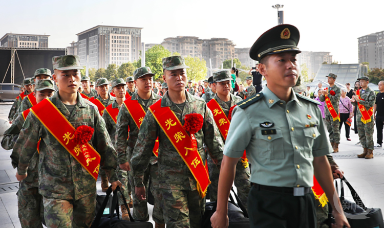 9月18日,梁平区在梁平南站广场举行2024年下半年新兵入伍欢送活动,30名新兵身着迷彩服,胸戴大红花,在亲人的祝福声中奔赴军营,开启军旅生活。