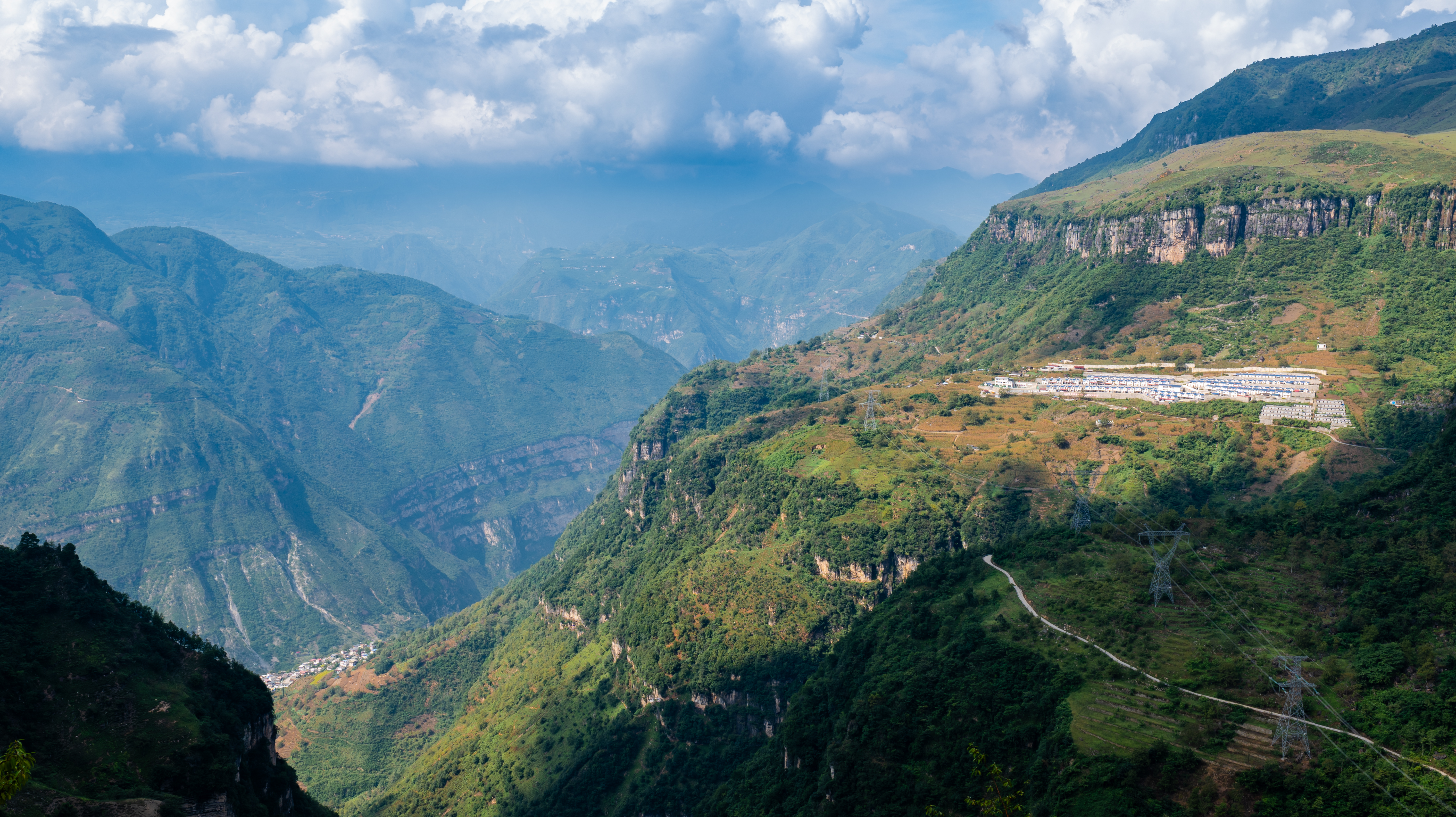 云雾缭绕,峭峰绝壁。二坪村小学就坐落在大渡河峡谷海拔1800米的悬崖上。