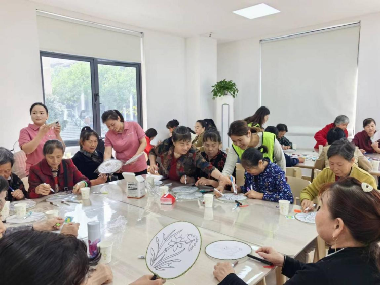 活动现场,工作人员为每位参与者发放了团扇、颜料、画笔等制作工具和材料。在工作人员的指导下,居民们开始动手制作自己的团扇。他们根据自己的喜好和创意,在扇面上绘制出各种美丽的图案,如花鸟虫鱼、山水风景等。整个活动现场弥漫着浓厚的创作热情和欢声笑语。