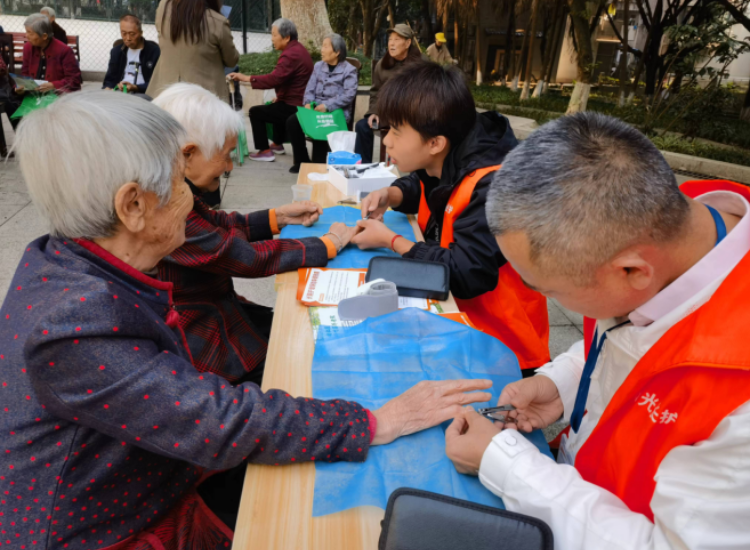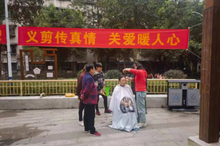 活动分为公益体检和公益义剪两个部分。社区卫生服务中心医护人员为活动现场的老人进行测血压、测血糖等,并针对性提出加强身体锻炼、饮食摄入等方面的健康问题。在义剪区域,理发师们手法娴熟,耐心地为每一位老人修剪发型和指甲。