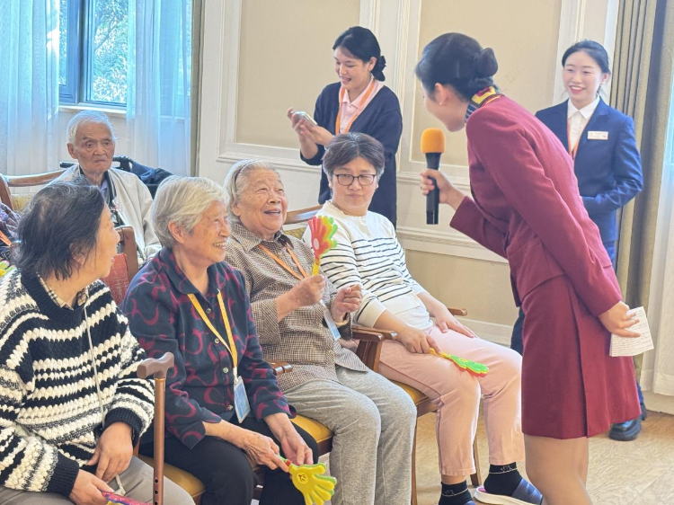 10月10日,羽裳路社区联合重庆市青年文明号阳光乘务组、客舱一分部团委、重庆分公司舞蹈协会、重庆营业部新悦班组的成员们一同来到重庆市渝北区椿萱茂(重庆回兴)老年公寓开展了“爱在金秋、情满重阳”活动。