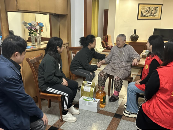 在社区同志的带领下,大家来到了渝中区陕西路6巷的陈兰阿姨家。陈阿姨患有脉管炎、高血压等疾病,腿脚行动不便,儿子在外地工作,所以常年独居。看见大家的到来,她十分高兴和激动,一边表示着感谢,一边和大家摆起了龙门阵:我明年就满80岁了,现在儿子也请了人照顾我,晚年生活真的很幸福。