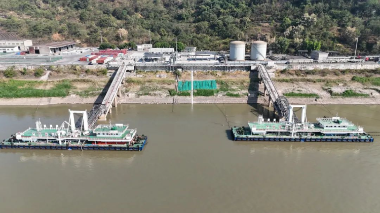 该项目于2022年6月开工,为重庆港与中航油合资合作项目,总投资约1.46亿元,新建以航空煤油为主的5000吨级油品泊位2个,配置80米输油趸船2艘,1个4车位柴油装车平台及相应配套设施,年设计通过能力310万吨。