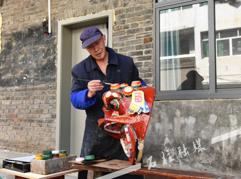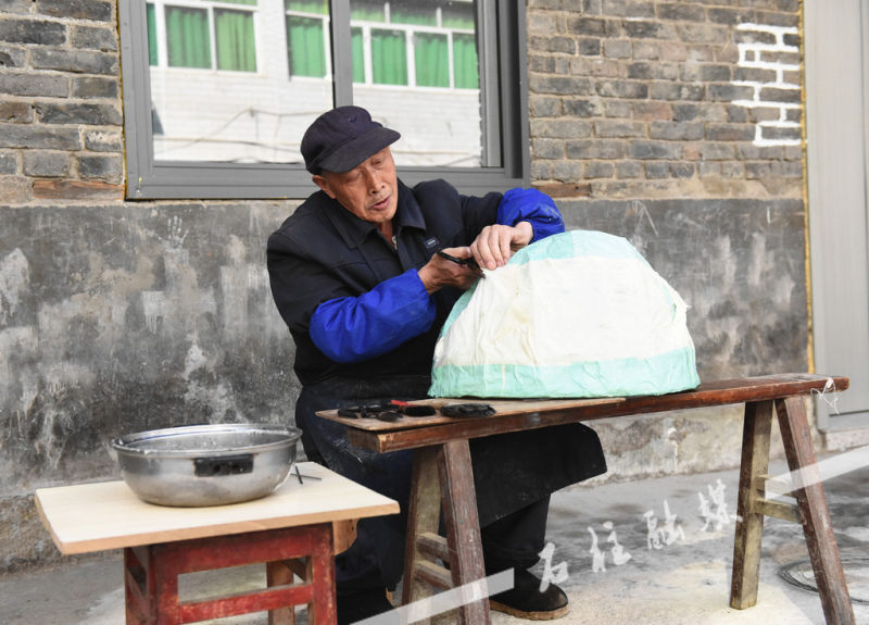 扎竹篾、调浆糊、糊纸张……10月9日清晨,虽然空气中带着丝丝寒意,但在冷水镇天河村冷溪街27号,现年73岁的唐洪现老人在自家门口,已开始了新一天的土狮狮头制作。手起手落之处,老人精神抖擞,动作娴熟。