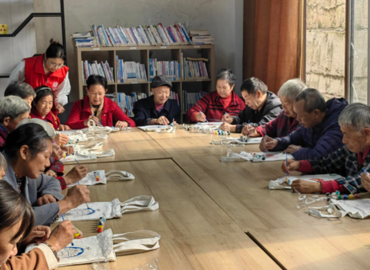 10月9日,金刚村联合渝馨家园开展“情暖重阳 关爱老人”手提袋DIY活动。