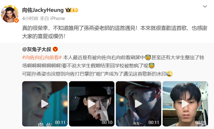 10月10日,向佐转发了该微博,并回应称:“真的很荣幸,不知道谁用了孙燕姿老师的这首遇见!本来就很喜欢这首歌、也感谢大家的喜爱或模仿!”