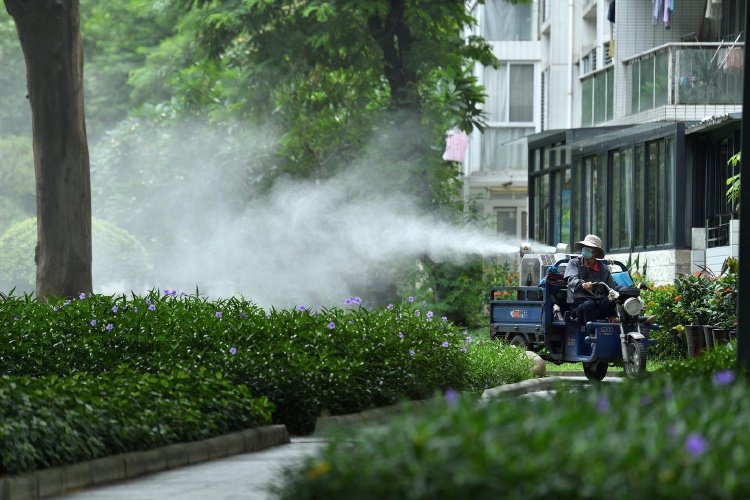 9月16日,广州一小区内进行灭蚊作业 图据视觉中国
