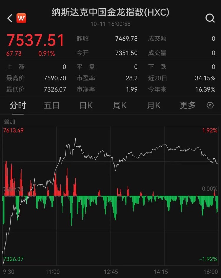 受到市场整体氛围推动,隔夜中概股也延续涨势。纳斯达克中国金龙指数周五从开盘跌近1.5%强势拉升,最终收涨0.91%,连续第二个交易日上涨。