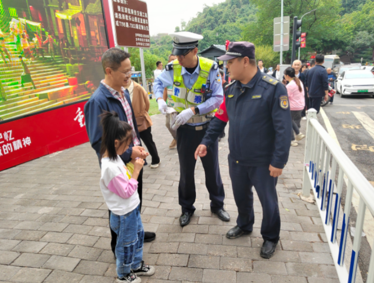 无独有偶,10月5日下午,队员陈龙再次巡查至白公馆大门附近时,发现2名小孩走失。其中男孩知道父母电话,现场队员在与其父母沟通后将其送至白公馆检票口。另一名女孩不知道父母电话,现场队员经交巡警协查,帮助其找到家人。小孩家长非常感激,对全体城管队员的优良品质表示高度赞赏。
