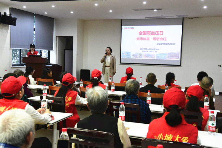 下午,在金剑社区活动室,璧山区妇幼保健院院长彭彩碧以“呵护老年健康,努力控制‘三高’”为题,为社区居民详细讲解了老年人如何控制“三高”及日常保健知识。在互动环节中,医护人员与社区居民开展了健康一问一答,帮助老年人掌握更多健康知识,提高预防疾病的能力。