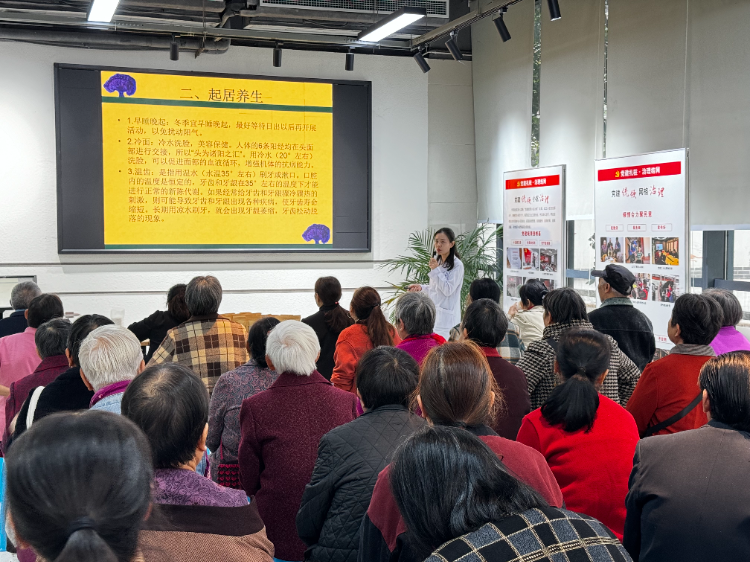 与此同时,孕产保健部支部的医护人员还为华龙社区居民带去了中医养身的健康科普宣教课堂,从饮食、起居、运动、穴位保健等方面指导群众如何在冬季进行自我健康管理。课后,医护人员还为居民提供了免费的养生茶和中药泡脚包,并耐心讲解每种药材的功效,获得群众的一致好评。