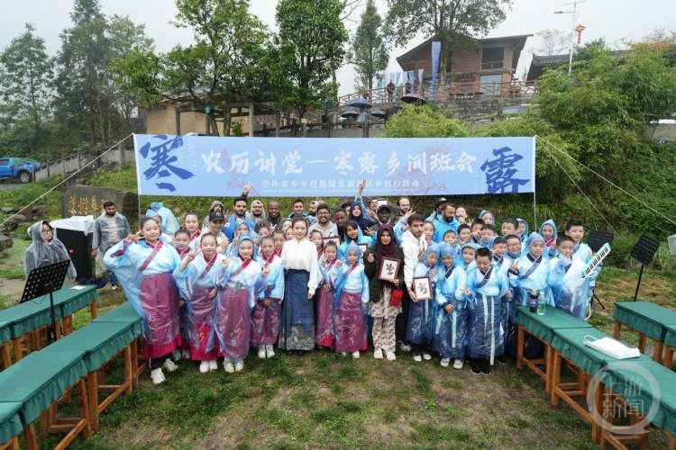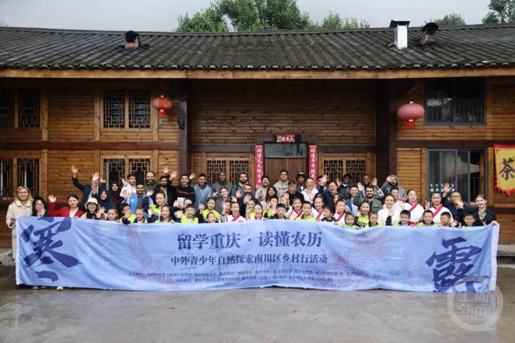 秋天细雨,将远处的山峦笼罩在一片朦胧之中,让人仿佛置身于一幅山水画。11日下午,来自南川区金山湖小学、北京师范大学南川实验学校的师生们,在山雾缭绕的大自然里,与外国留学生一起,参加寒露主题乡间班会,了解中国的寒露时节。