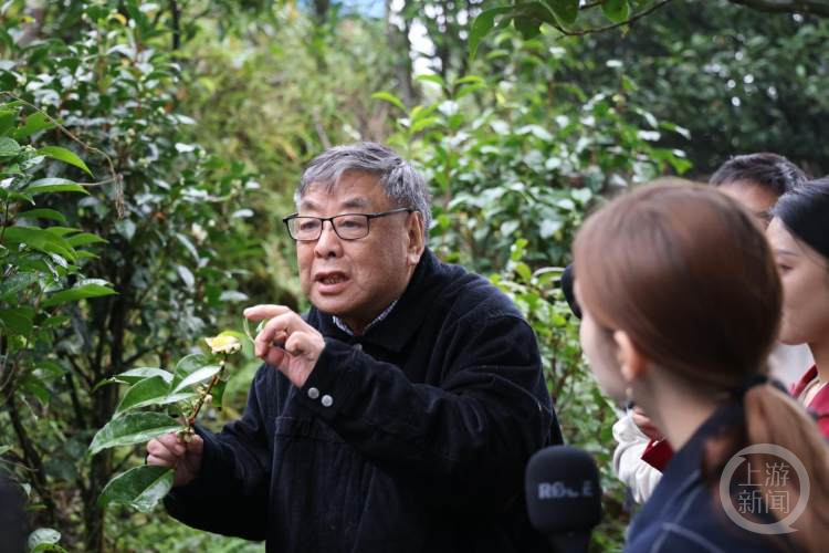 “一棵树活了数千年,太厉害了!”一睹“茶树鼻祖”的真容后,留学生们拿出手机与它合影。
