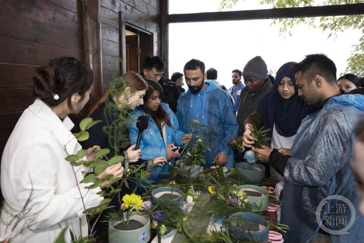 活动中,中外青少年们还投身自然怀抱,学习菊花、茶花的插花,以及茶园除草技术。