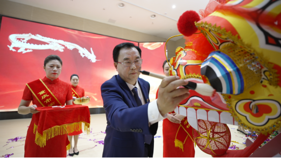 一点金、二点银、三点天庭……仪式上,邬开富,鹿山小学党支部副书记、副校长谭兴均,副校长汪应满轻蘸朱砂,为祥龙点睛。