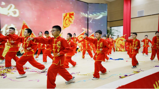 鼓点紧凑,铙钹铿锵。随后,鹿小师生尽情地挥舞、快速地奔跑、敏捷地穿梭……龙舞《雏龙腾飞》、武术《中国龙娃说》、民族舞《龙娃洗春天》等节目精彩纷呈,大家以勃发的热情舞动,以昂扬的朝气歌唱,用实际行动诠释“团结凝聚,奋进开拓”的“鹿龙精神”。