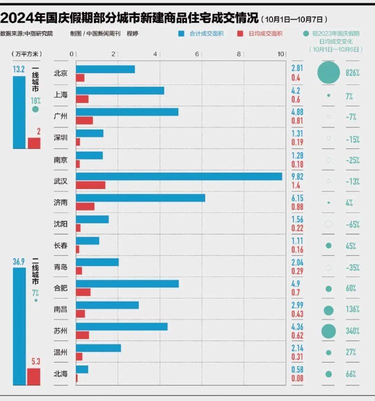 当前,预期的改善对于房地产市场乃至整体经济形势都有重要意义。因此这一轮房地产政策的出台,以及决策层有关房地产市场的表态,在激励信心上的作用可能大于具体政策的刺激作用。尽管楼市的反应不及股市迅猛,但是一些开发商反馈的数据显示,“十一”假期成交量同比上涨五成以上,这可能是2022年以来优化房地产政策效果最好的一次。