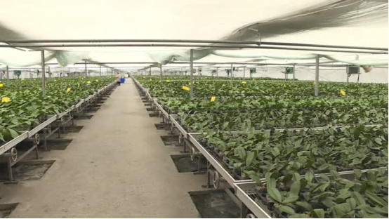 江苏新港农业科技有限公司技术员介绍:“我们有一个环境温度控制的系统,通过管道的一个热循环来保证棚内适宜番茄生长的环境温度,系统会根据温度实时调整加温的时间和频率。”