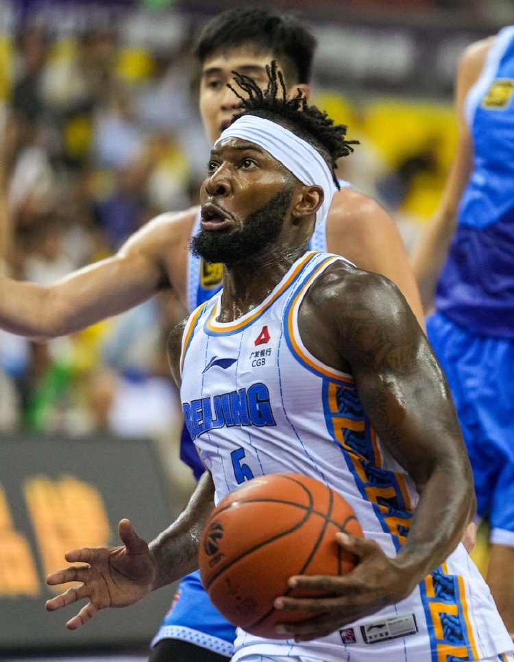 新华社照片,长沙,2024年10月4日,北京北汽队球员杰曼(前)在比赛中进攻。 当日,在湖南岳阳举行的2024-2025赛季中国男子篮球职业联赛(CBA)季前赛中,北京北汽队91比63战胜福建晋江文旅队。 新华社记者 陈思汗 摄