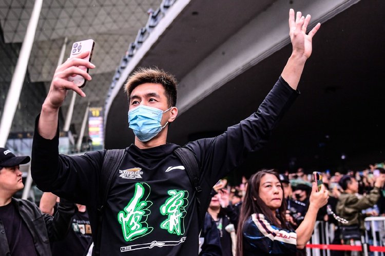 新华社照片,沈阳,2024年5月23日,辽宁本钢队球员郭艾伦与球迷互动。当日,获得2023-2024赛季中国男子篮球职业联赛(CBA)总冠军的辽宁本钢队抵达沈阳桃仙国际机场,球迷在机场迎接冠军回家。 新华社发