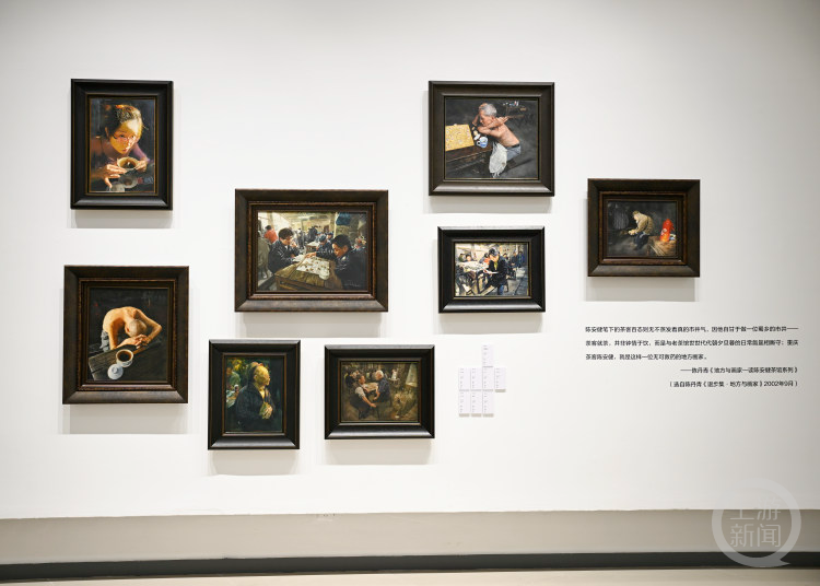 “时光的形状——陈安健个展”是“四川美术学院美术馆文脉与谱系系列研究展”的重要组成部分。10月12日,本次展览的策展人之一、四川美术学院美术馆馆长何桂彦告诉记者,展览用四个单元一共呈现了陈安健过去20余年间围绕交通茶馆创作的52件绘画作品。