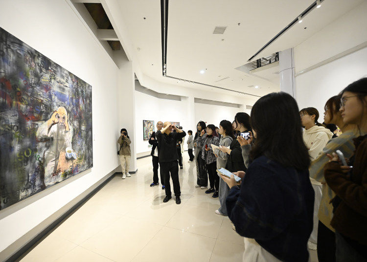 格外有趣的是,由此诞生的一些“涂鸦”作品也被单列成了一个系列展陈到了本次展览中。“交通茶馆变成网红打卡地之后,我就觉得自己过往的创作手法已经不过瘾了,它需要新的手法来展现。”陈安健说,邀请游客加入进来触景生情、激情创作就是这样来的。