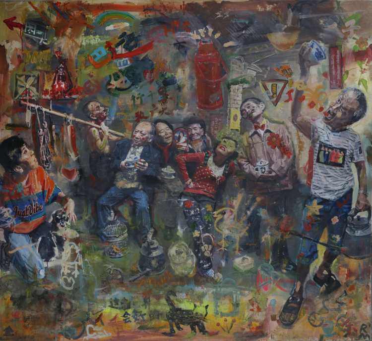 《新茶馆系列——涂鸦NO.39》110×120cm 综合材料,2021年