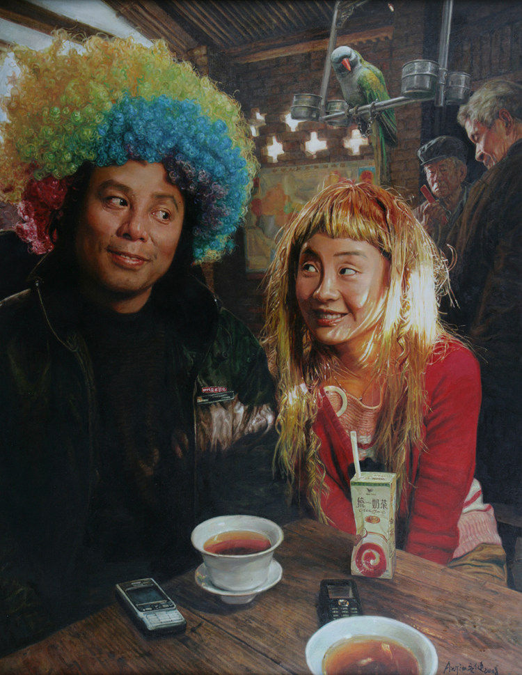 《茶馆系列—自画像》 118×152cm布面油画 2008年