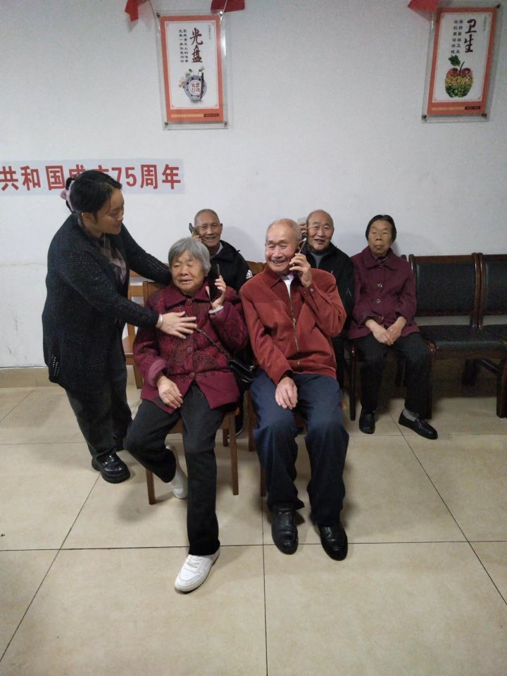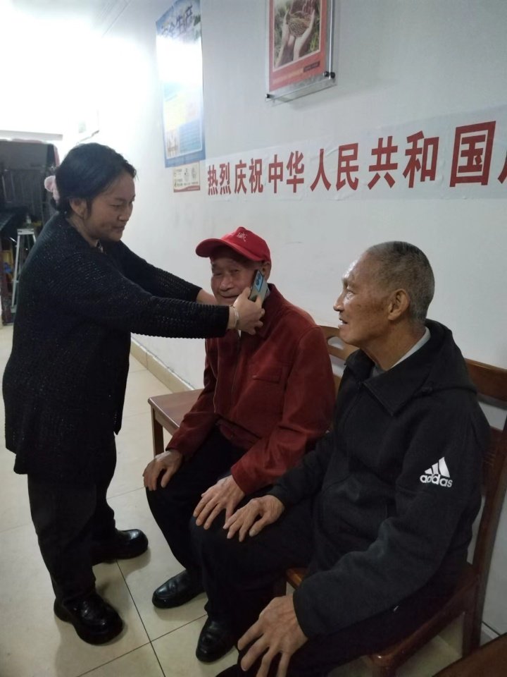 与此同时,在钟多街道养老服务中心,工作人员正忙着替老人们拨通他们儿女的电话。王爷爷坐在椅子上,听着女儿和外孙女的声音,激动得说不出话来。外孙女甜甜地喊道:“外公,重阳节快乐!我们很想您!”王爷爷的眼眶湿润了,他颤抖着手,轻轻地抚摸着屏幕,仿佛这样就能感受到家人的温度。
