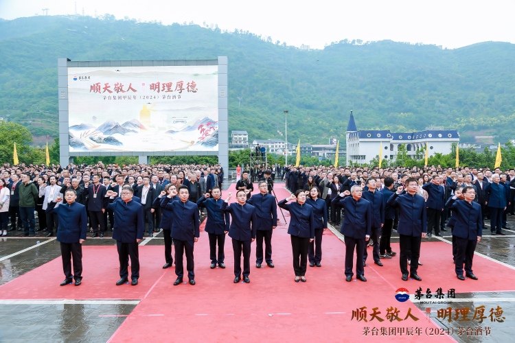 在茅台酒节上,茅台人用茅台敬酒礼致敬历代祖师宗师;诵读酒节敬文、拜师、宣誓等一系列活动,充分体现了茅台人对先辈功绩的感恩和对传统酿造工艺的敬畏。