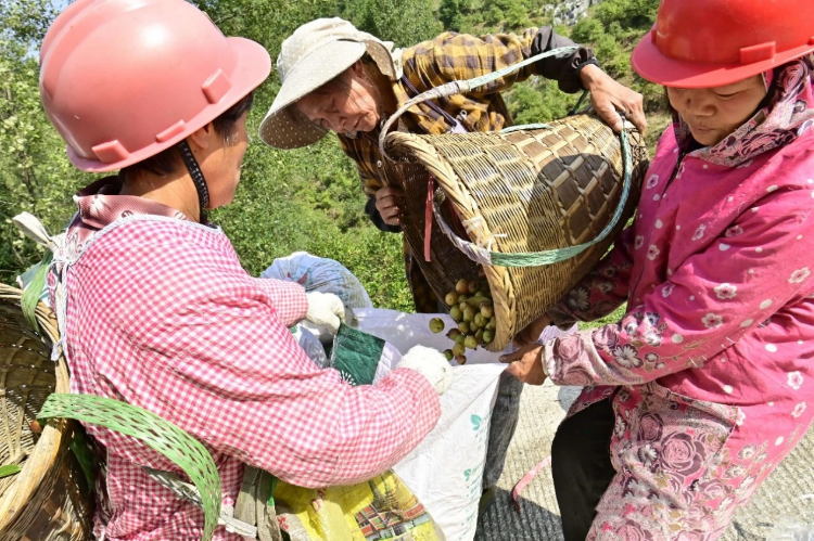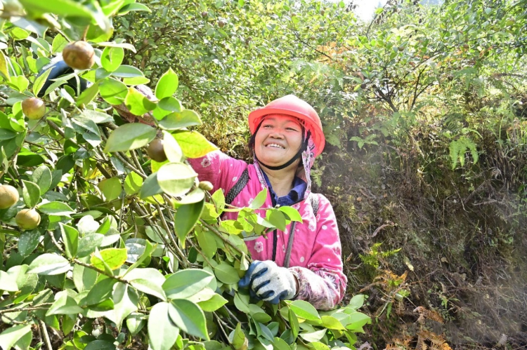 “今年的油茶树挂果特别好,我们每人每天能摘600多斤油茶果。在油茶基地务工,一年收入在万元以上。”在油茶林里忙得不亦乐乎的村民张春花乐呵呵地说道。