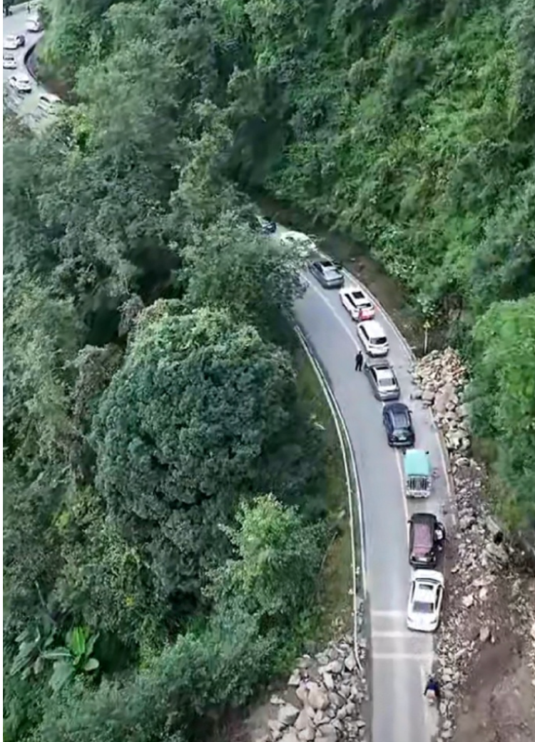 网传哀牢山堵车视频。网络图