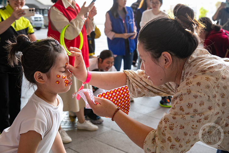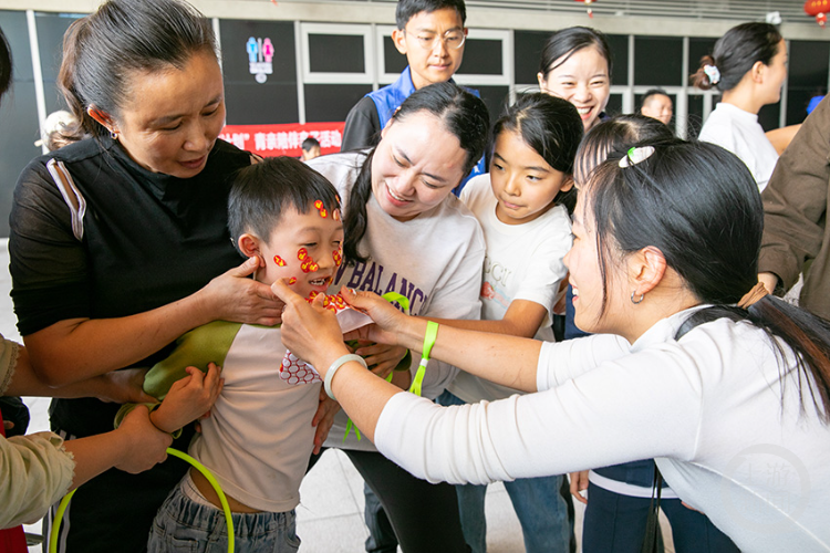 短短1分钟,5个小朋友脸上就被爸爸妈妈们贴成了“红色”。