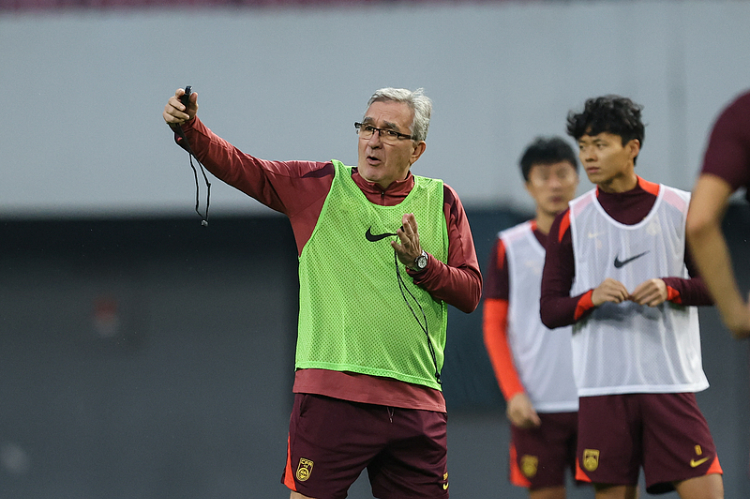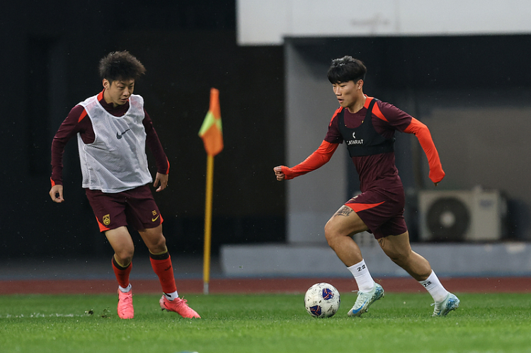 2024年10月13日,山东青岛,中国男足在青岛国信体育场训练,备战同印度尼西亚的美加墨世界杯亚洲区预选赛第三阶段第4轮的比赛。 视觉中国供图