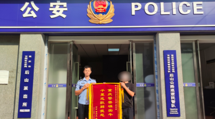 “实在是抱歉,我来晚了,这是一面‘迟到’了8个月的锦旗,我在年初的时候就找人做好了的,我觉得只有亲自送过来,才能表达我对你们的感激之情,今天总算圆了这个心愿……”就在前不久,为表达对民警的敬意和感激之情,远在河南的贾先生亲自将一面印有“重庆警察确实牛,千里返款解我愁”的锦旗送到了后山派出所民警的手中,这面“显眼”的锦旗也见证了浓浓的警民情谊。