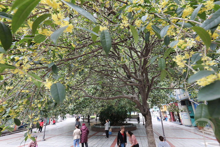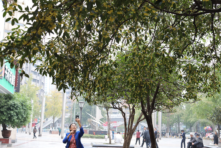 近日,不少重庆市民惊喜“迟到”了一个月的桂花终于开花了,大街小巷又飘起了桂花香。