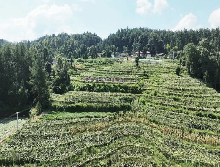 瓜果飘香季,沿着蜿蜒曲折的盘山公路一路向下,来到桐楼乡普子村、细沙村两个村集体经济打造的丝瓜基地里,远处望去,绿油油一片;走近一看,一株株丝瓜藤爬上水泥桩向四周蔓延。