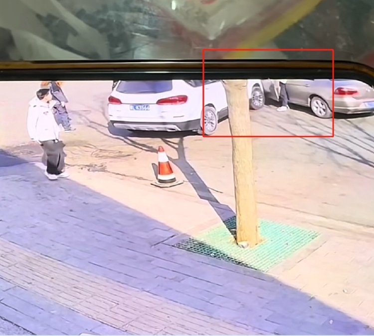 时间显示为2025年1月18日14时许的监控视频中,一辆白色SUV在马路中间掉头时,撞上一辆直行的银褐色小轿车左侧车门。碰撞后,SUV立即倒车,小轿车驾驶员下车查看时,SUV却突然加速撞了上去,导致小轿车驾驶员左腿被车门卡住。