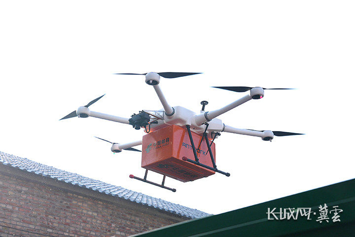 无人机精准降落在圈头邮政所。长城网·冀云客户端记者 路钦淋 赵娇莹 摄