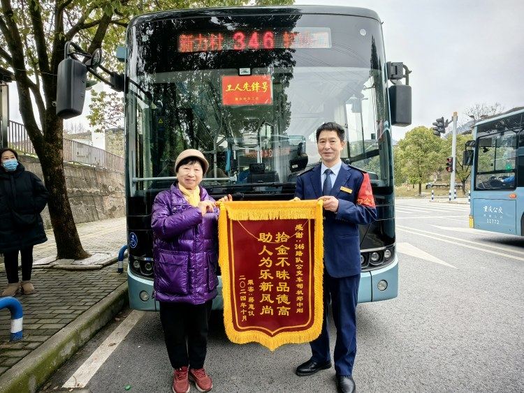 蒋惠仪老人为346路公交驾驶员送去锦旗
