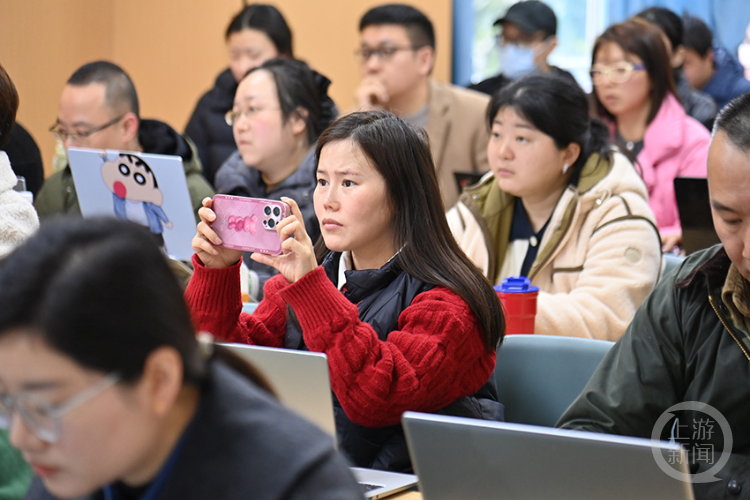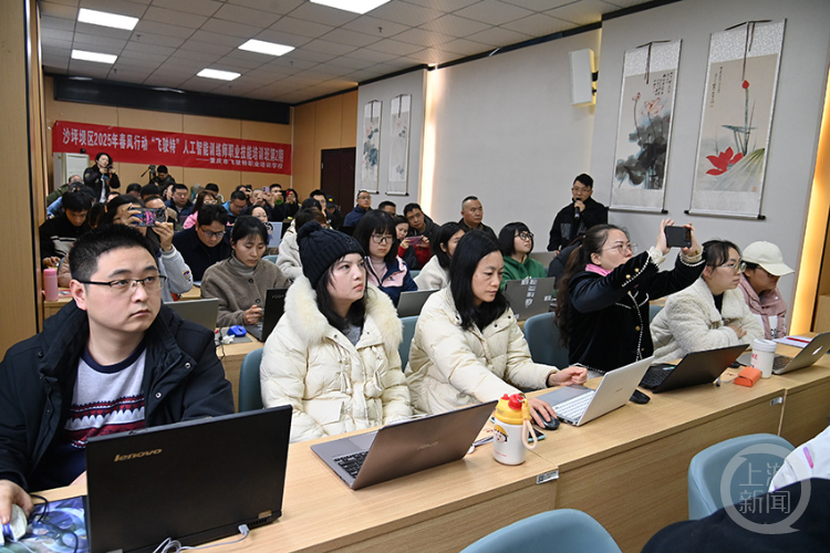3月4日,重庆市沙坪坝区天星桥街道天陈路社区,学员们在人工智能训练师(初级)班上课学习。本次政府补贴性职业技能培训班为期10天,具体讲授AI绘画、AI音乐、AI助力微信公众号、AI新媒体运用等内容,辖区内48名失业人员和企业新入职员工参与免费培训。