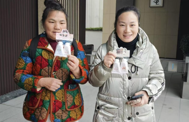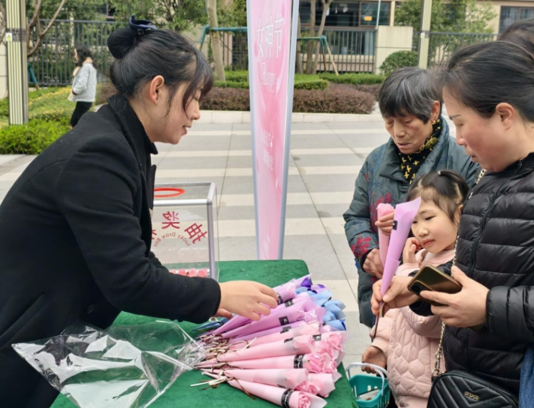 福袋送惊喜,关爱显真情。除了鲜花,社区还精心准备“节日福袋”,里面装有护手霜、香皂花等实用物品,寓意着对女性的关怀和呵护。收到福袋的女性脸上洋溢着幸福的笑容,纷纷表示,“真是太贴心了,让我们感受到了温暖!”