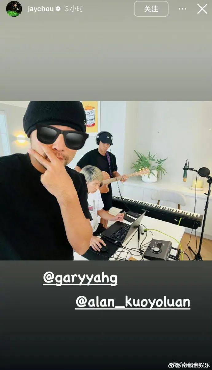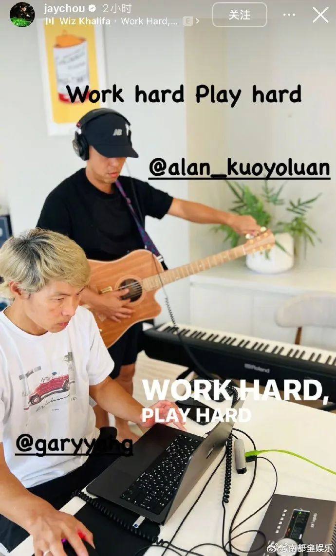 今天中午,周杰伦在社交平台晒出比耶录音照,并配文:“Work hard Play hard”。