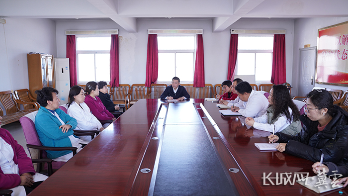 杨震生正在与院内医护人员面对面交流。长城网·冀云客户端记者 邢丁 摄