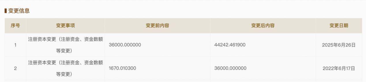 国家企业信用信息系统显示,2025年6月26日,同心医疗注册资本由3.6亿元变更为4.42亿元,增幅为22.9%。