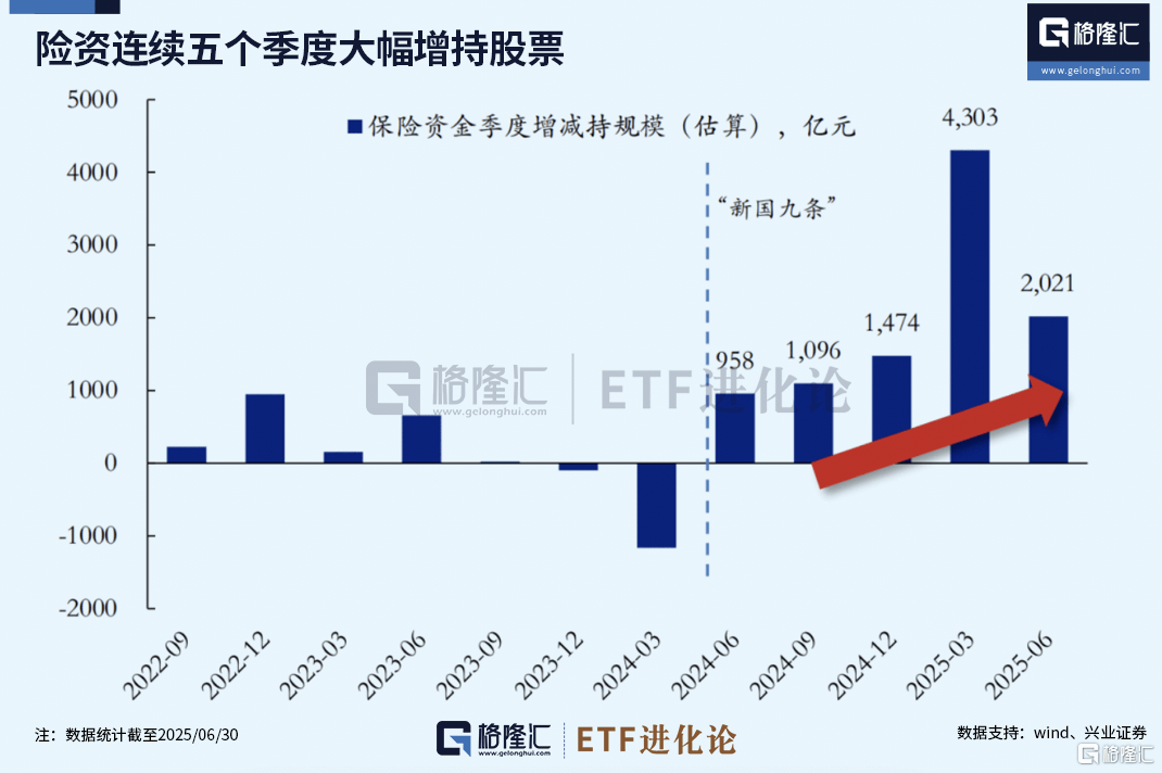 截至2025年6月30日,险资的股票投资总额从去年底的2.4万亿,猛增到今年上半年3.1万亿,净增超6000亿,超过去年全年,连续五个季度大幅增配股票。
