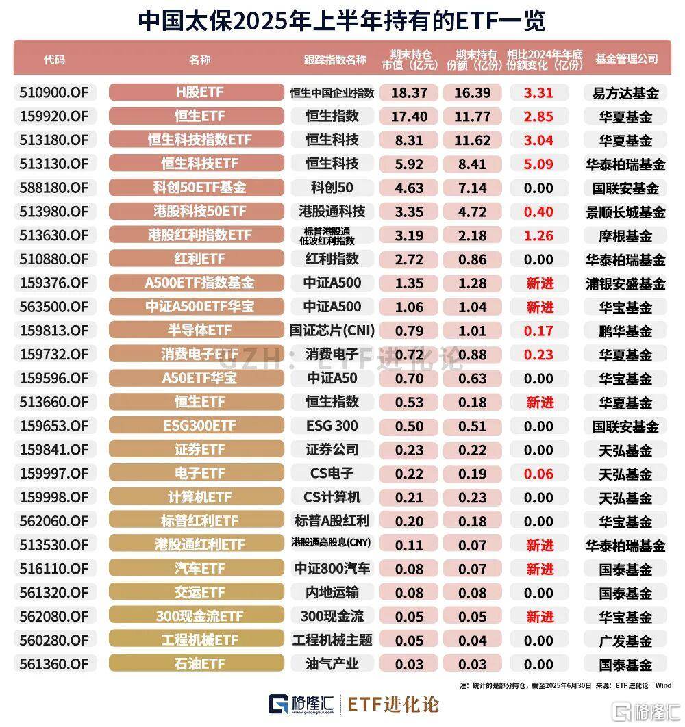 上半年新进的6只ETF分别是:浦银安盛A500ETF指数基金、中证A500ETF华宝、华夏恒生ETF、华泰柏瑞港股通红利ETF、国泰汽车ETF和华宝300现金流ETF。